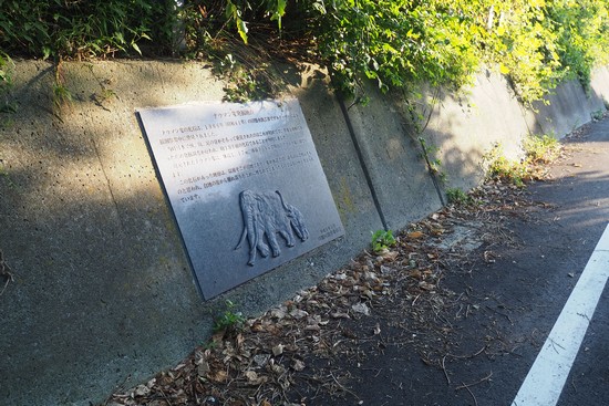 水路掘削中にナウマン象の骨が出た地点です。記念の銘版が設置されています。