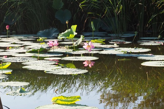 吉高機場のちょっと先に船溜まりがあります。蓮が咲いていました。