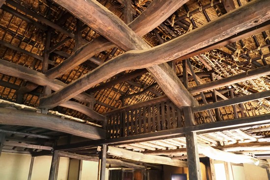 煮炊きをする部分の上は梁がむき出しになっています。