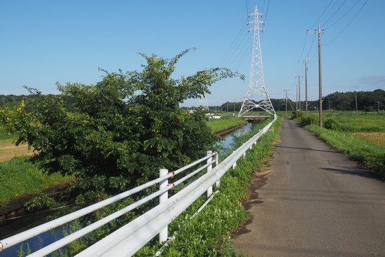 稲豊橋の200m程手前で土手を降りて、田んぼの中の、水路沿いの道に移ります。