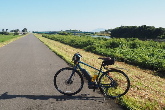 小貝川を離れ、鬼怒川を豊水橋で渡ります。橋の両側に狭い歩道があります。
