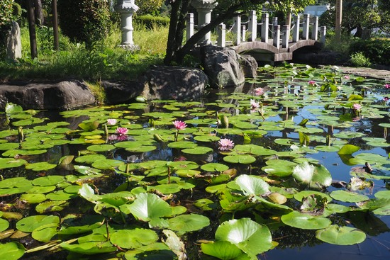 御廟所の下にある池。ピンクの水連が咲いていました。