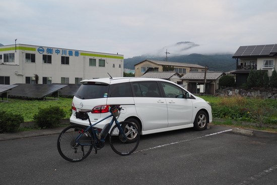 6時00分に着きました。距離:141Km。 山には雲がかかっていました。