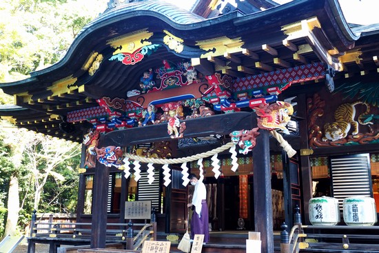 更に御本殿をアップします。美しい装飾に飾られています。あの有名な左甚五郎