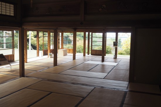 大広間が開け放されて、周囲の庭が良く見えます。無料で説明員の方が付いて