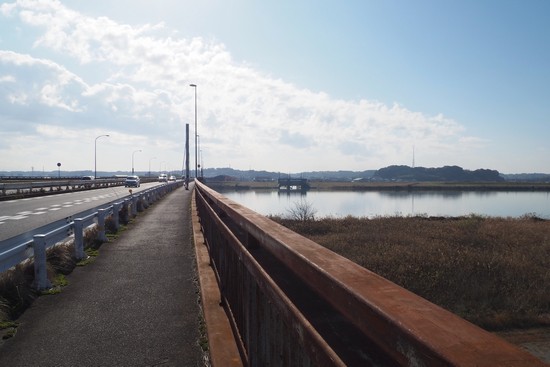東関東自動車道の下で利根川を離れます。ここは与田浦を渡る橋の上。遠くに見える