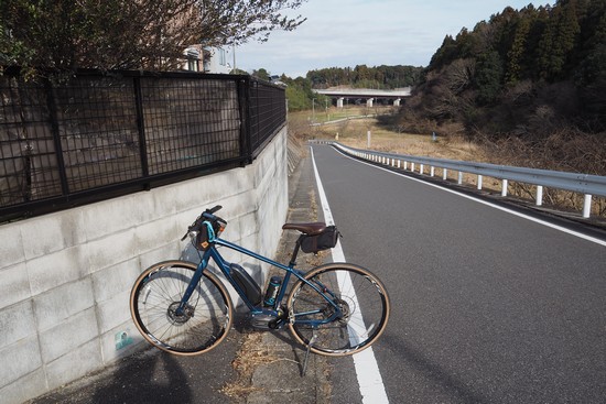 住宅地の外周となる道で、谷津に下って印旛沼に至ります。高架道が見えてい
