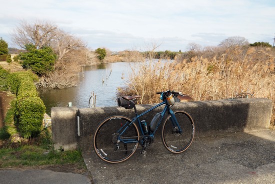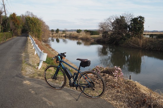 ふなと橋の先にある船溜まりで印旛沼を離れ、旧長門川沿いの道に入ります。