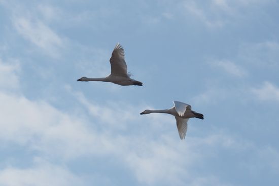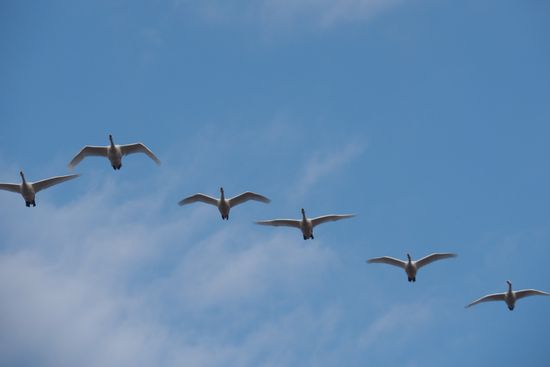 飛んでいる白鳥。あの大きな鳥が飛ぶんですねぇ・・・。