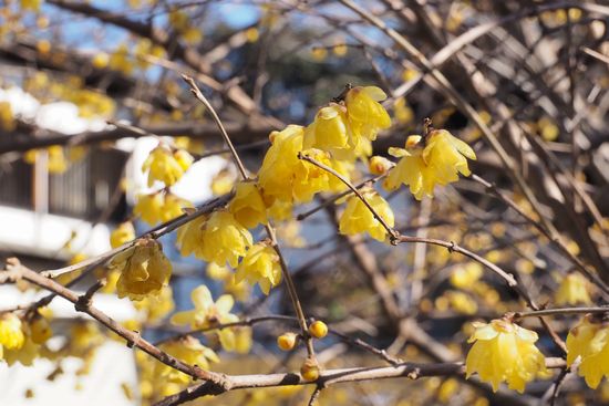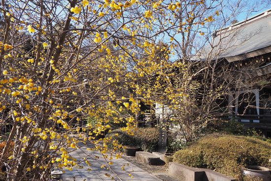 本堂の前に池があり、その周囲に蝋梅が植えられていました。