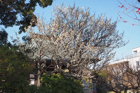 拝殿前に、満開の白梅がありました。天神様といえば梅ですね。