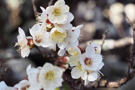 梅のアップ。今回は、花撮影用に、ちょっと長いズームレンズを持ってきました。