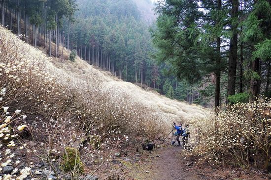 ミツマタの群生した斜面に遊歩道で降りてこられます。