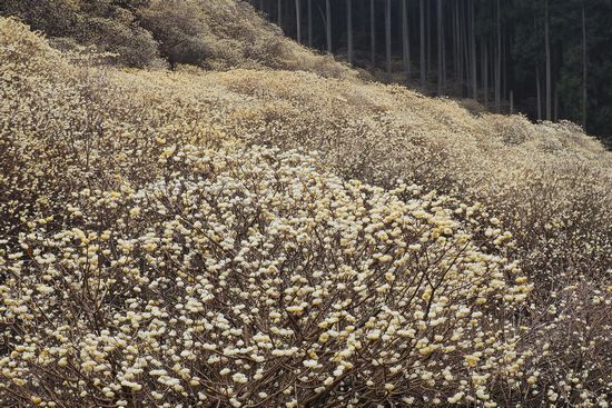 道中、あちこちでミツマタを見かけます。小さな山がミツマタで覆われている所も