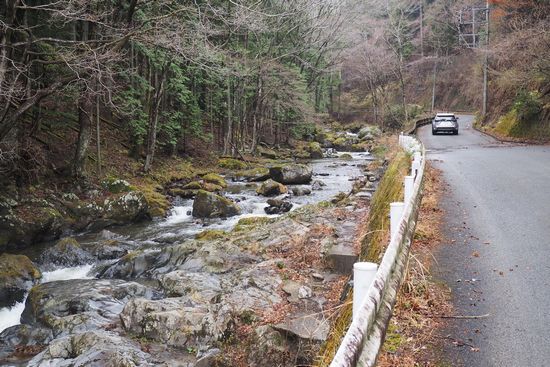 渓谷沿いに進むほど、県道337の道幅は狭まってきます。自動車の場合、山道に