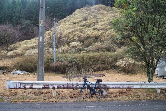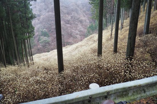 林道三境線を登ってきました。ガードレールの向こうの斜面は総てミツマタで覆い尽く